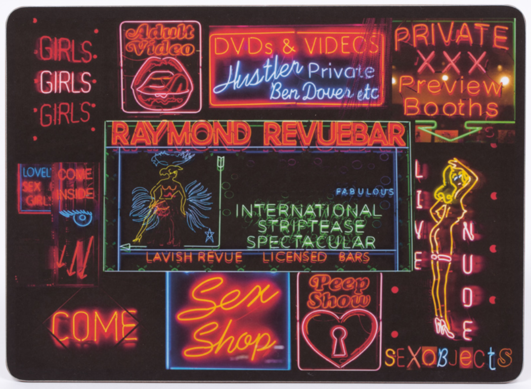 Other opportunities to “Buy curious” on Deborah’s Sex Objects website include lampshades and cushions in her Soho Illuminations collection which document the iconic neon signs. I remember some of these garish lights from visits to 1970’s London, trying to lure in ‘punters’ from the Soho streets.